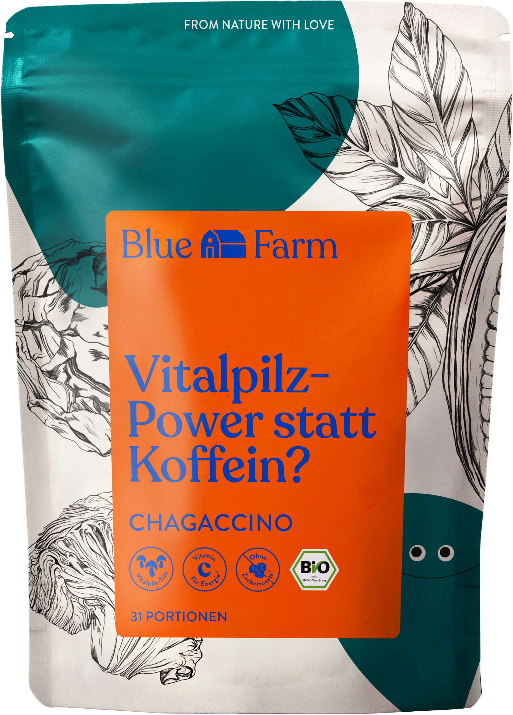 A morning beverage with a difference: Organic Chagaccino by Blue Farm combines fermented oats with cocoa powder and mushroom extracts from Chaga, Cordyceps and Hericium for a delightfully chocolatey flavour. The caffeine-free mushroom coffee is a fantastic alternative to coffee. The creamy texture and full-bodied flavour make every sip a pleasure.