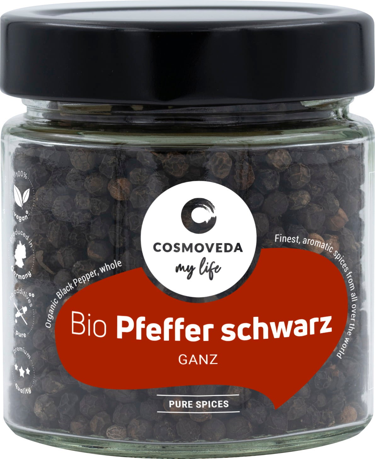 Cosmoveda Organic Black Pepper, whole, 100 g