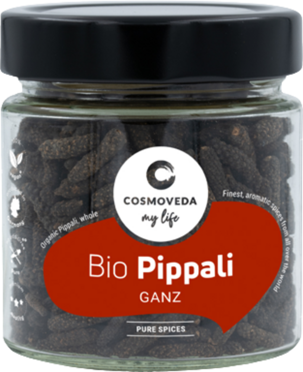 Pippali (long pepper) is a spicy black pepper. Together with black pepper and ginger powder a famous rejuvenating agent is produced according to Ayurveda.