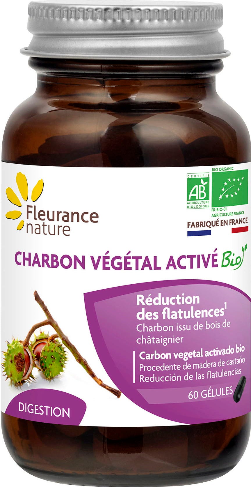 Fleurance Nature Organic Activated Charcoal, 60 capsules