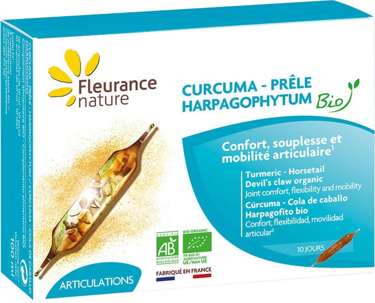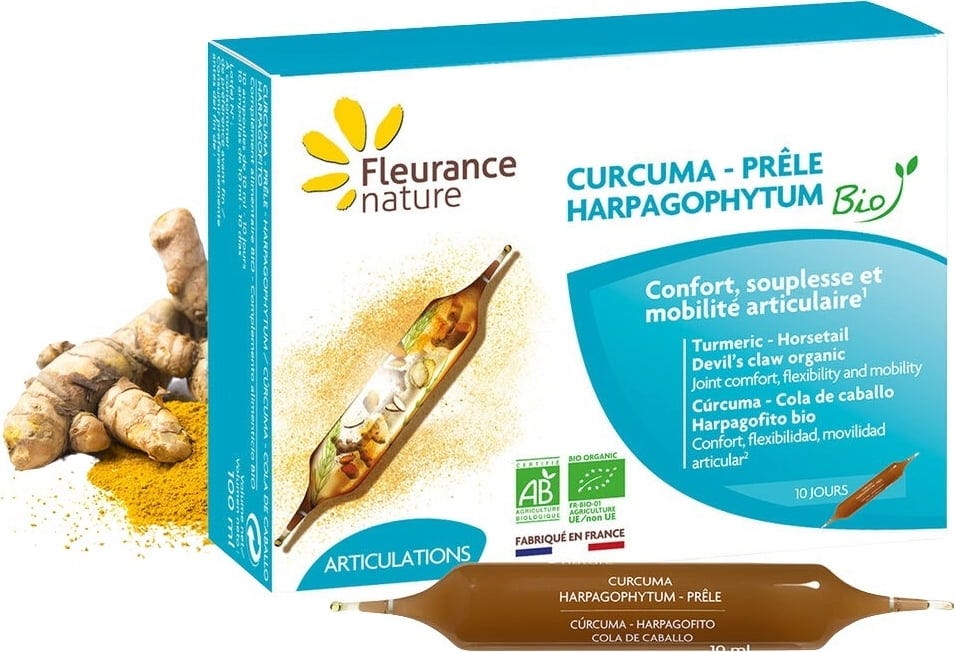 Fleurance Nature Organic Turmeric, Devil’s Claw & Horsetail, 10 ampoules