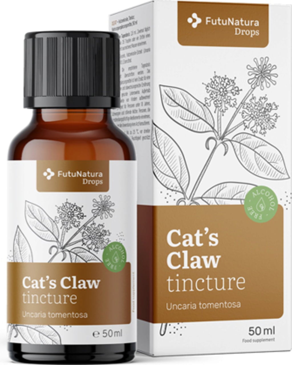 The Cat's Claw Tincture is part of the FutuNatura Drops range and comes in a practical dropper bottle, allowing for easy and precise dosing.