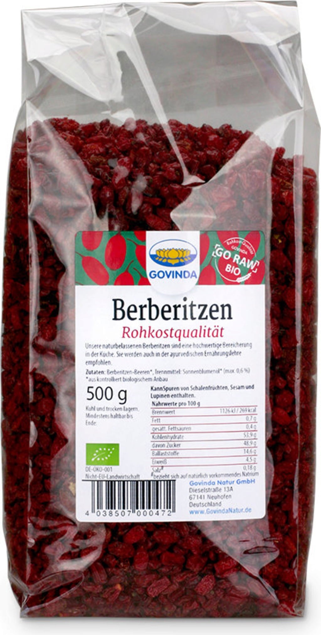 - The natural dried barberries are also recommended by Ayurvedic dieticians. With their fine taste and their beautiful colour, they are not only suitable for snacking, they can also be used when cooking and baking.