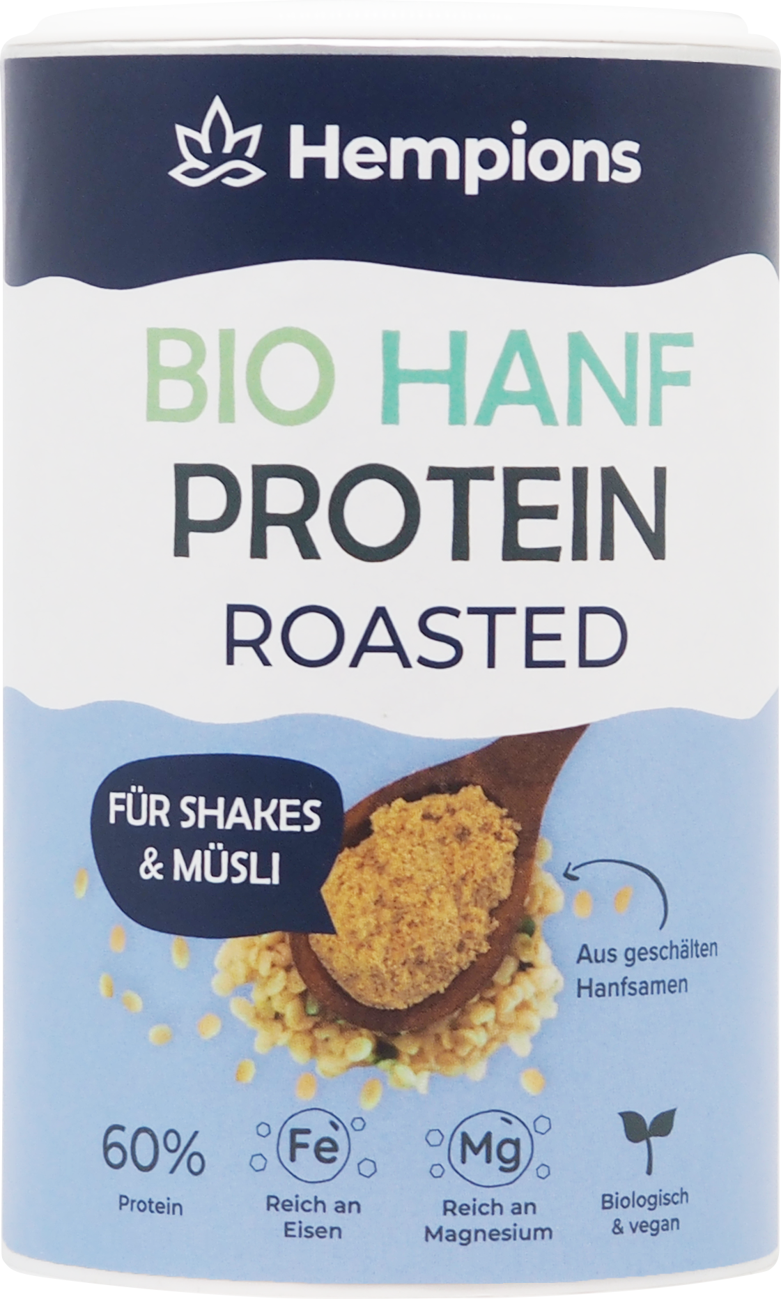This organic hemp protein powder made from hulled hemp seeds has a high protein content of 60%. It is particularly rich in protein, fibre, and iron. The vegan powder can be consumed raw and is particularly suitable for enriching shakes, smoothies, and muesli with valuable protein. It can also be used as a partial flour substitute in baking.