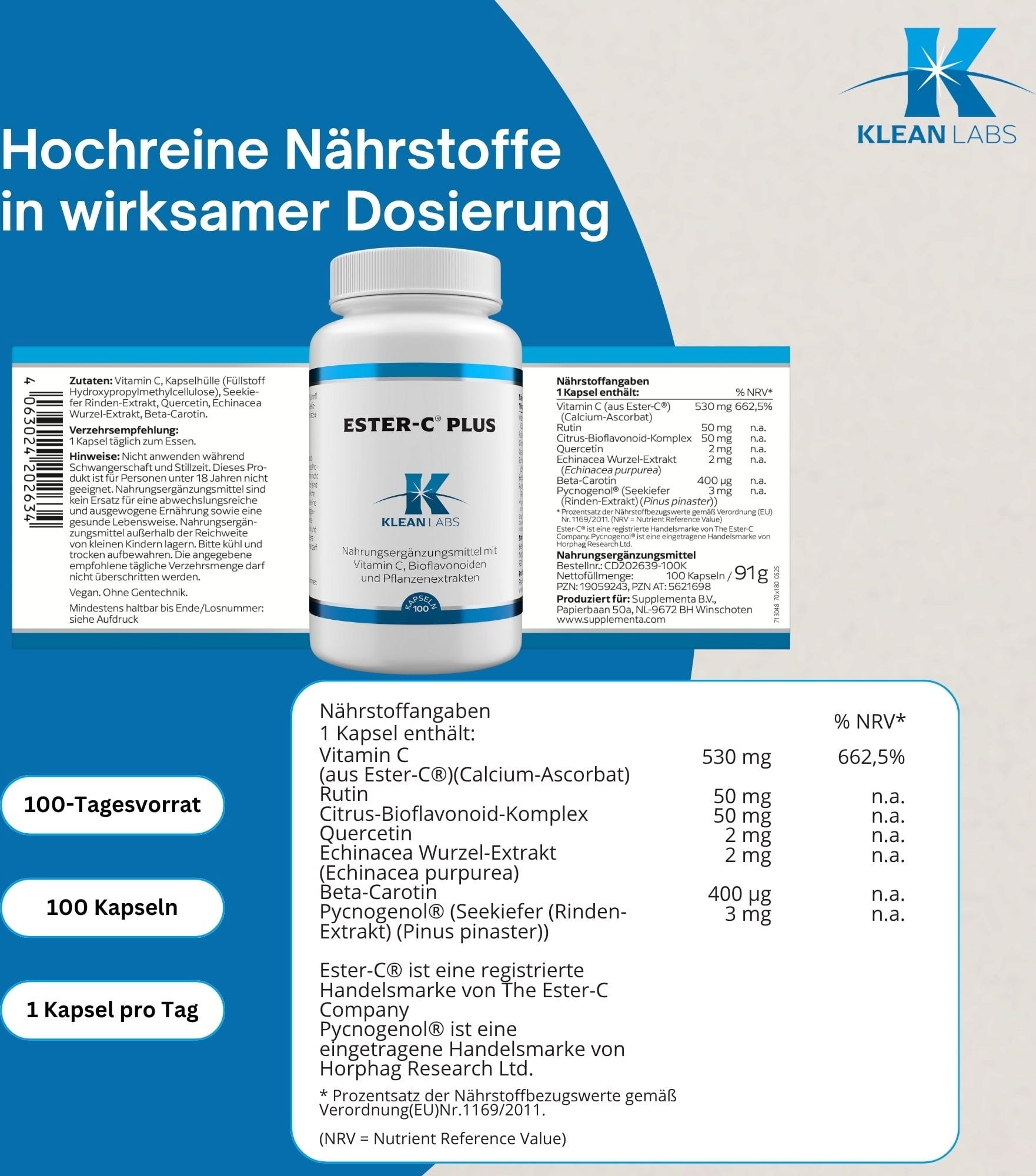 KLEAN LABS Ester-C® Plus, 100 capsules