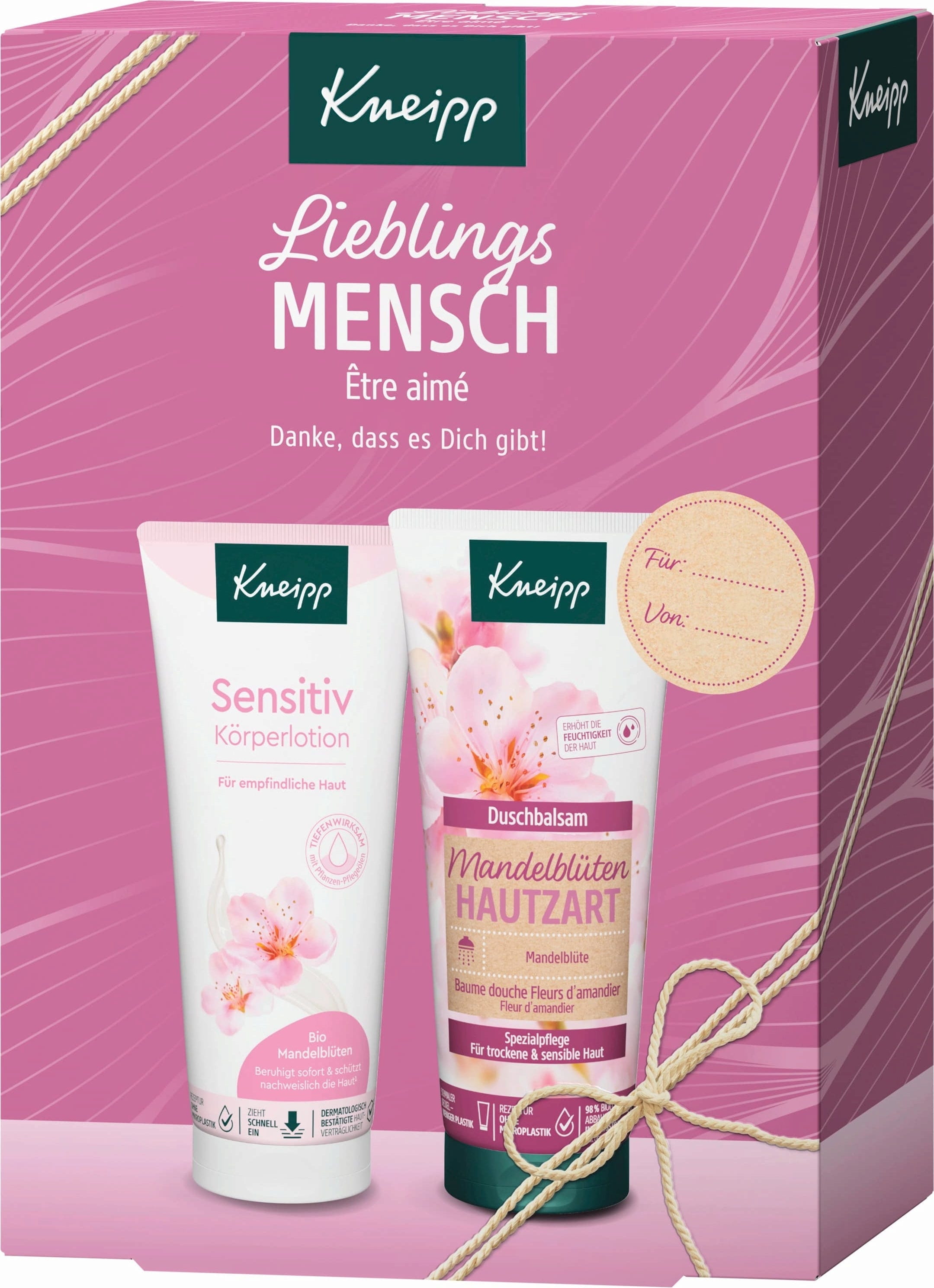 The Kneipp Favourite Person gift set is a lovingly put together care gift set for special people in your life. It contains a body lotion and a shower balm from the tried-and-tested almond blossom skin care range - ideal for dry and sensitive skin types. The combination of precious almond oil and gentle formulations makes your skin feel soft and supple every day. Give the gift of a little time-out full of care and gratitude with this set.