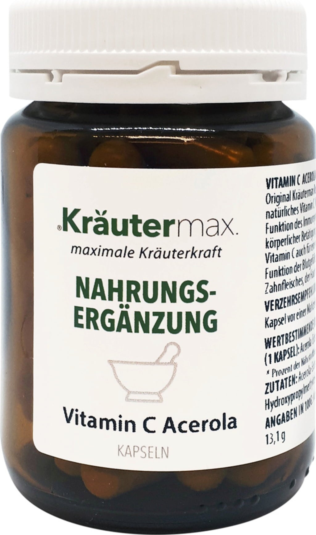 The Vitamin C Acerola capsules are used as nutritional supplements and contain natural acerola extract. Acerola fruit contains one of the highest natural contents of vitamin C.