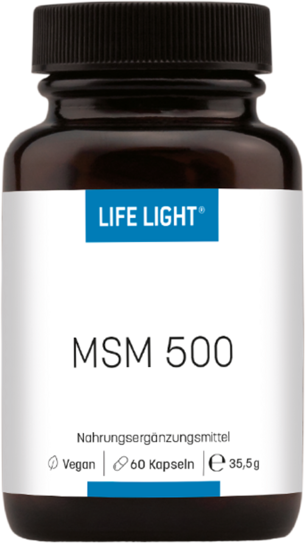 The MSM 500 capsules by Life Light offer a convenient way to incorporate pure MSM into your daily routine. Each capsule contains 500 mg of high-quality methylsulfonylmethane, carefully processed and easy to integrate into everyday life. MSM is a bioactive source of sulphur, which plays an important role in structural proteins such as collagen, keratin and elastin.