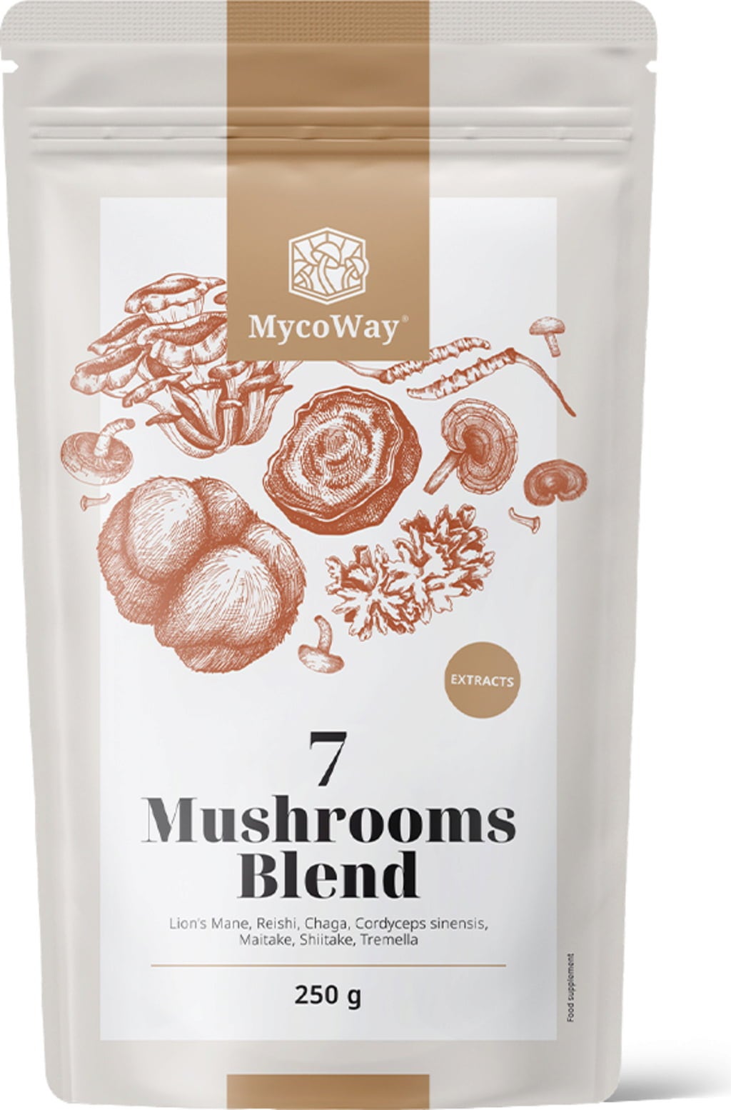 This formula combines the extracts of seven traditional mushrooms in a single powder. It includes Lion's Mane, Reishi, Chaga, Cordyceps sinensis, Maitake, Shiitake, and Tremella. By using extracts in ratios of 4:1 and 12:1, this blend offers a concentrated form of the ingredients that far surpasses conventional mushroom powder.