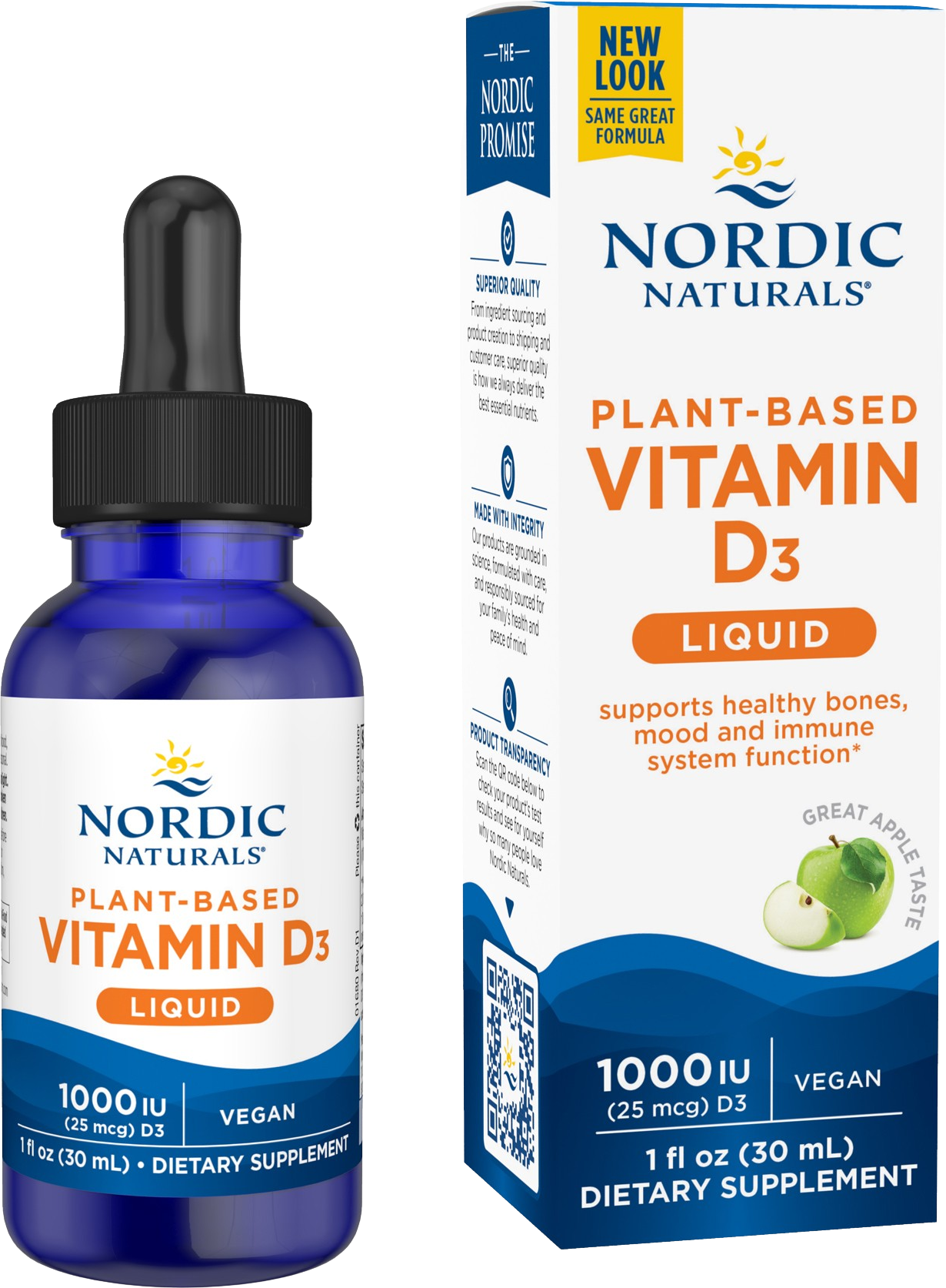 Plant-Based Vitamin D3 Liquid by Nordic Naturals is your vitamin D3 supplement in a liquid, purely plant-based form, ideal for vegans or those who don't to take tablets. Each 0.5 ml dose contains 1000 IU (25 µg) cholecalciferol from lichen.