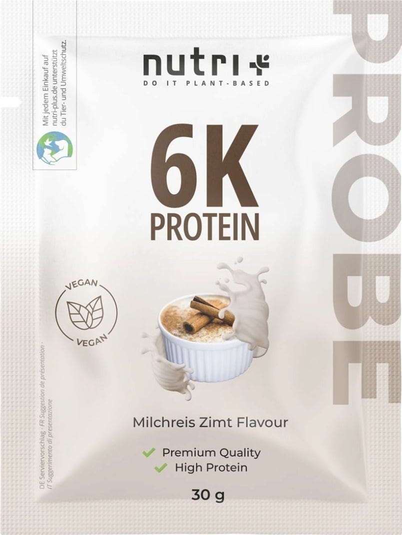 nutri + Vegan 6K Protein Powder, Trial Size, Rice Pudding-Cinnamon Flavour (30 g)
