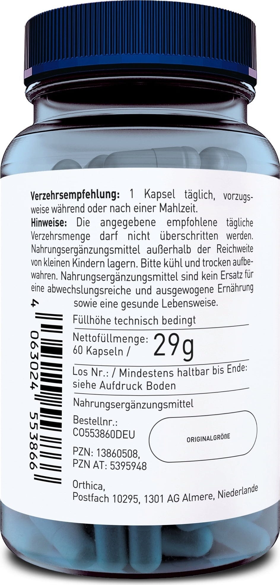 Tri-Zinc-25 by Orthica provides zinc in an organic, easily absorbed form. Each capsule contains 25 mg of zinc, carefully dosed for precise supplementation. The vegan formulation contains no ingredients of animal origin and is free from unnecessary additives. Thanks to the high-quality capsule matrix, this trace element can be easily integrated into your daily routine.