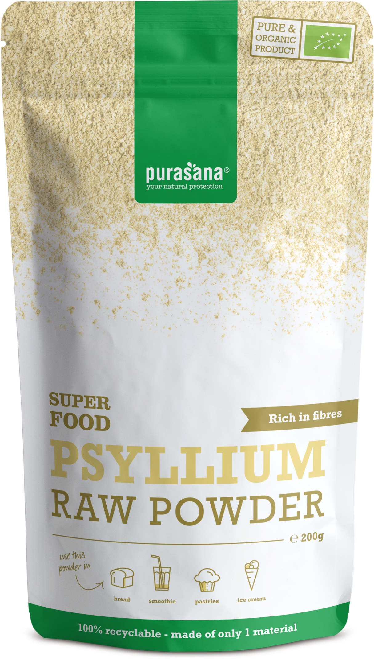 Purasana's psyllium seed powder naturally contains valuable fibre. The powder is made from the seeds of the Plantago ovata plant, which grows in India. The powder is very gently processed.
