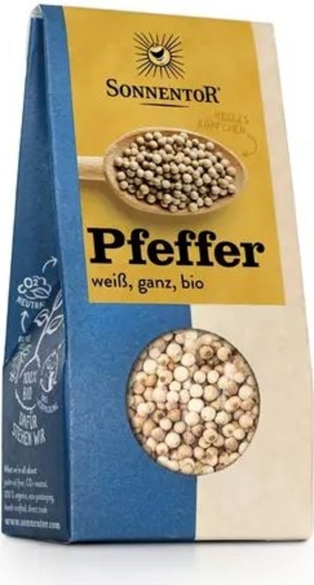 To create white pepper, ripe black pepper fruits are harvested and then soaked in water for about a week. The mesocarp, the outer shell, disintegrates and is separated from the endocarp. White pepper therefore contains all the spiciness of black pepper and is less aromatic.